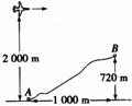 2、如图所示,一架在2 000 m高空以200 m/s的速度水平匀速飞行的轰炸机,要想用两枚炸弹分别炸山脚和山顶的目标A和B.已知山高720 m,山脚与山顶的水平距离为1000 m,若不计空气阻力,g取10m/s2,则投弹的时间间隔应为( )