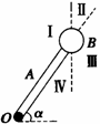 长为L的轻杆A一端固定一个质量为m的小球B,另一端固定在水平转轴O上,杆随转轴O在竖直平面内匀速转动,角速度为ω. 某时刻杆与水平方向成α角,如图所示,则此时刻杆对小球的作用力方向在哪个范围内( )