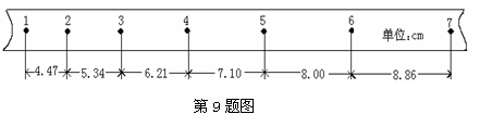 ⅱ做匀变速直线运动的小车带动纸带通过打点计时器,打出的部分计数点如第9题图所示.每相邻两点间还有四个点未画出来,打点计时器使用的是50Hz的低压交流电,设1、3,2、4,3、5,4、6,5、7两点间的平均速度分别等于2,3,4,5,6几点的瞬时速度.则: