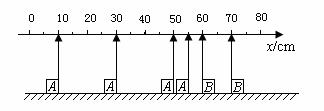 ,而闪光本身持续时间极短,在这4次闪光的瞬间,A、B两滑块均在0-80cm刻度范围内,且第一次闪光时,滑块A恰好通过x=55cm处,滑块B恰好通过x=70cm处,求: