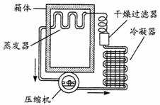 .15.图为电冰箱的工作原理示意图,压缩机工作时,强迫制冷剂在冰箱内外的管道中不断循环,在蒸发器中制冷剂汽化吸收箱体内的热量,
