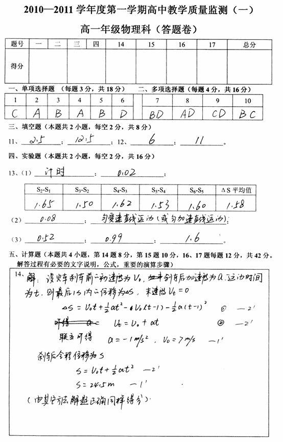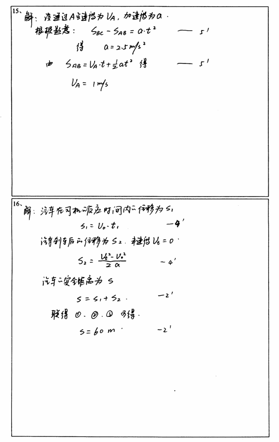 16、为了安全,在高速公路上行驶的汽车之间应保持必要的距离,如果汽车在高速公路上的最高时速为72km/h,司机的反应时间为0.5s(司机看到危险到采取刹车的时间间隔),刹车后汽车的加速度大小为4m/s2,则汽车的安全距离是多少?