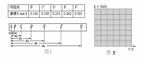(2)根据(1)中得到的数据,以A点对应的时刻为t=0,试在图2所示的坐标系中合理选择好标度,作出v-t图象,利用该图象求物体的加速度a= m/s2;