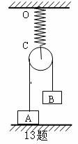 13.轻弹簧秤上端固定于O点,下端悬挂一个光滑的