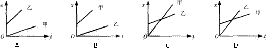 13、甲、乙两物体朝同一方向做直线运动,已知甲的速度大于乙的速度,t=0时乙在甲的前面一定的距离处,则两物体的x-t图象是