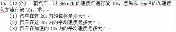14、(10分)某市规定车辆在市区行驶的速度不能超过40km/h,有一辆汽车遇到紧急情况刹车后,经过1.5s停止,量得路面刹车痕迹为x=9m,问这辆车是否违章?