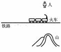 如图所示,在人与山之间有一条铁路穿过,当一列火车刚好行驶在人与山之间时拉响了汽笛,人看见汽笛冒出的白烟1秒后听到汽笛声,又经过1.2秒后听到从山反射回来的汽笛声。求:人与山之间的距离(忽略光传播的时间,声音在空气中传播的速度为340米/秒)。
