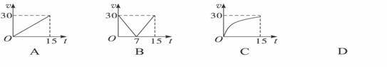 做变速直线运动的物体经过15s,其速度图象如图所示,15s内其位移最大的是图_________,回到出发点的图是_________,位移相等的图是_________.