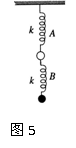 20、如图5所示,两个轻质弹簧的劲度系数均为k,悬挂的两个小球的质量均为m,则A、B两弹簧的伸长量之比为 ( )