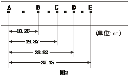 15、小车拖着穿过打点计时器的纸带做匀变速运动.如图是经打点计时器打出纸带的一段,打点顺序是A、B、C、D、E,已知交流电频率为50Hz,纸带上每相邻两个计数点间还有一个点.则小车运动的加速度