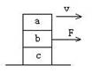 6.如图,a、b、c为三个质量相同的木块,叠放于水平桌面上,水平恒力作用于木块b,三木块以共同速度v沿水平桌面匀速移动,则在运动过程中