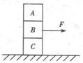 三个相同的物体叠放在水平面上,B物体受到水平拉力作用,但三个物体都处于静止状态,如图所示,下列判断正确的是( )