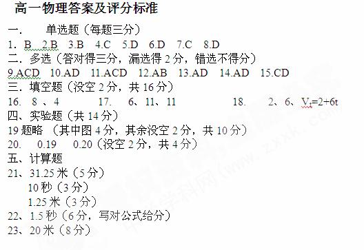 21(11分)、汽车刹车前速度为5m/s,刹车获得的加速度大小为0.4 m/s2(1)求汽车刹车开始后20秒内滑行的距离x1;(2)从开始刹车到汽车位移为30米所经历的时间;(3)静止前2.5s内汽车滑行的距离x2