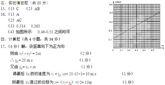17.(6分)一个物体从20m高的地方自由下落(忽略空气阻力),则求物体接触地面前一瞬间的速度?最后1s内的位移?(g取10m/s2)