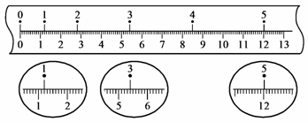 (5)(9分)在实验中记录小车运动的纸带如图3所示,在纸带上选择0、1、2、3、4、5的6个计数点,相邻两计数点之间还有四个点未画出,纸带下面并排着带有最小分度为毫米的刻度尺,零点跟“0”计数点对齐,由图可以读出三个计数点1、3、5跟“0”计数点的距离分别为d1、d2、d3,请填入下表中.