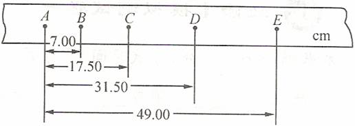13、在研究匀变速直线运动的实验中,如图所示为一次记录小车运动情况的纸带,图中A、B、C、D、E为相邻的计数点,相邻计数点间的时间间隔T=0.1s.