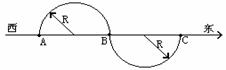2、如图,物体沿两个半径为R的半圆弧由A到C,则它的位移和路程分别是