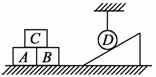 12.如右图所示,A、B两物体并排放在水平桌面上,C物体叠放在A、B上,D物体悬挂在竖直悬线下端,且与斜面接触,若接触面均光滑,下列说法正确的是