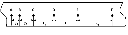 在“探究小车速度随时间变化的规律”的实验中,纸带记录了小车的运动情况,在纸带上确定出A、B、C、D、E、F共6个计数点,每两个相邻的计数点之间还有4个点未画出。S1=1.40cm 、 S2=2.90cm