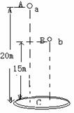 21.如图,在地面上一盘子C的正上方A处有一金属小球a距C为20m,在B处有另一个金属小球b距C为15m,小球a比小球b提前1s由静止释放(g取10m/s2)。则