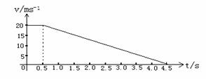 22.(10分)一辆长途客车正在以v=20m/s的速度匀速行驶,突然,司机看见车的正前方X=45m 处有一只小狗(如图),司机立即采取制动措施。从司机看见小狗到长途客车开始做匀减速直线运动的时间间隔Δt=0.5s。若从司机看见小狗开始计时(t=0)该长途客车的速度-时间图像如图所示。求: