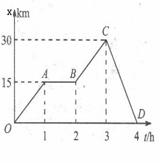 15.如图是一辆汽车做直线运动的, X-t图象, 对线段OA、AB、BC、CD所表示的运动,下列说法正确的是( )