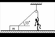 14. (11分)如图所示,物块的质量m=30kg,细绳一端与物块相连,另一端绕过光滑的轻质定滑轮,当人用100N的力竖直向下拉绳子时,滑轮左侧细绳与水平方向的夹角为53°,物体在水平面上保持静止. 已知sin53°=0.8,cos53°=0.6,取g=10m/s2,求: