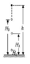 21、(11分)自来水由水管口滴出水滴,每相邻水滴滴出的时间间隔基本上是相等的,在水管口的正下方放一薄铁片,水滴到铁片时发出响声.逐渐向上移动铁片,直到看到水滴从水管口刚好滴出时,恰听到水滴落到铁片的响声,记录铁片距地面的高度H1=10cm,再继续上移铁片,第二次、第三次看到水从水管口滴出同时听到水滴到铁片的响声,分别测出H2=45cm,H3=70 cm.