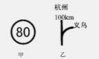 为了使公路交通有序、安全,路旁立了许多交通标志.如图所示,甲图是限速标志(白底、红圈、黑字),表示允许行驶的最大速度是80 km/h;乙图是路线指示标志,表示到杭州还有100 km.上述两个数据的物理意义是