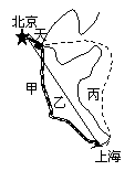 3、如图所示,三位旅行者从北京到上海,甲乘火车直达,