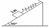 用轻弹簧竖直悬挂质量为m的物体,静止时弹簧伸长量为L。现用该弹簧沿斜面方向拉住质量为2m的物体,系统静止时弹簧伸长量也为L。斜面倾角为300,如图所示。则物