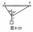 28.用绳AC和BC吊起一重物,绳与竖直方向夹角分别为30°和60°,如图6-20所示,绳AC能承受的最大力为400N,绳BC能承受最大力为250N,求物体最大重力不应超过多少?