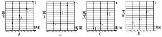 四个小球在离地面不同高度处,同时从静止释放,不计空气阻力,从某一时刻起每隔相等的时间间隔,小球依次碰到地面。则刚刚开始运动时各小球相对地面的位置可能是( )