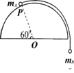 如图所示,细而轻的绳两端,分别系有质量为mA、mB的球,mA静止在光滑半球形表面P点,已知过P点的半径与水平面夹角为60°,则mA和mB的关系是( )