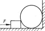 如图所示,球重为G,半径为R,紧靠在竖直墙上,木块重为W,厚为h,放在球边,当对木块施以水平推力F后,球刚好对地面压力为零,如不计一切摩擦,