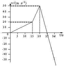 24.(10分)一枚火箭由地面竖直向上发射,但由于发动机故障而发射失败,其速度-时间图象如图所示,根据图象求:(已知