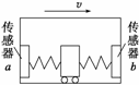 19、用如图所示的装置可以测量汽车在水平路面上做匀加速直线运动的加速度.该装置是在矩形箱子的前、后壁上各安装一个由力敏电阻组成的压力传感器.用两根相同的轻弹簧夹着一个质量为2.0 kg的滑块,滑块可无摩擦滑动,两弹簧的另一端分别压在传感器a、b上,其压力大小可直接从传感器的液晶显示屏上读出.现将装置沿运动