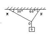 30. (7分) 如图,重为200牛的重物由ON、OM绳悬挂在天花板上,已知ÐONM=60°,ÐOMN=30°,请画出受力分析图并求绳ON和绳OM受到的拉力的大小?