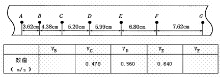 (1)试根据纸带上各个计数点间的距离,计算出打下B、C、D、E、F五个点时小车的瞬时速度,将下表中空格处速度值填入Ⅱ卷的相应位置上。