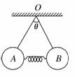 8.如图所示,完全相同的质量为m的A、B两球,用两根等长的细线悬挂在O点,两球之间夹着一根劲度系数为k的轻弹簧,静止不动时,弹簧处于水平方向,两根细线之间的夹角为θ.则弹簧的长度被压缩了 ( )