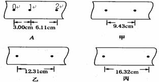 (2 在甲、乙、丙三段纸带中,属于纸带A的是____________