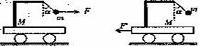 9.如图所示,质量为M 的小车放在光滑的水平面上.小车上用细线悬吊一质量为m的小球,M>m.现用一力F水平向右拉小球,使小球和车一起以加速度a向右运动时,细线与竖直方向成α角,细线的拉力为T;若用一力F’水平向左拉小车,使小球和车一起以加速度a’向左运动时,细线与竖直方向