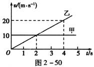10. 甲、乙两个质点同时、同地、向同一方向做直线运动,它们的v - t图象如图2-50所示,