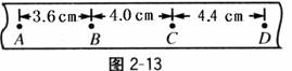 (选填“直流”或“交流”)电源的计时仪器,电源的频率是5 0 Hz时,它每隔 s打一次点.在某次“练习使用打点计时器”的实验中,打点纸带如图2-1 3所示,A、B、C、D是连续打出的四个点.由图中数据可知,纸带的运动是 (选填“匀速”或“变速”)运动,纸带在打下A、D点间运动的平均速度大小是