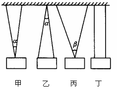 如图所示,教室里同一块小黑板用相同的细绳按四种方式竖直悬挂着,其中α<β则每根细绳所受的拉力中,数值最大的是( )