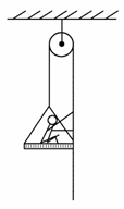 14.(14分)在2008年北京残奥会开幕式上,运动员手拉绳索向上攀登,最终点燃了主火炬,体现了残疾运动员坚韧不拔的意志和自强不息的精神。为了探求上升过程中运动员与绳索和吊椅间的作用,可将过程简化。一根不可伸缩的轻绳跨过轻质的定滑轮,一端挂一吊椅,另一端被坐在吊椅上的运动员拉住,如图所示。设运动员的质量为70 kg,吊椅的质量为10 kg,不计定滑轮与绳子间的摩擦。重力加速度取g=10 m/s2。当运动员与吊椅一起正以加速度a=1 m/s2上升时,试求: