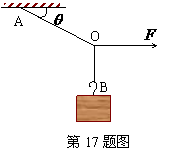 17.(10分)高一某同学想测一段绳子所能承受的最大拉力,找来一个重为100N的物体,用这段绳子AB将物体悬挂在天花板上,并在绳子中某一点O处加一个水平力