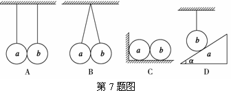 7.在下图中物体a、b均处于静止状态,a、b间一定有弹力的是( )
