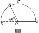 15.半圆形支架BAD,两细绳OA和OB结于圆心O,下悬重为10N的物体,OA与水平成60o,使OA绳固定不动,将OB绳的B端沿半圆支架从水平位置逐渐向竖直的位置 C 移动的过程中,如图所示,请在答卷方框中画出当OB绳上拉力最小时O点的受力示意图,并将各力的大小标在图上。