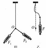 的共同作用下,将橡皮条的结点拉长到O点;图乙表示准备用一个拉力F拉橡皮条.下列说法正确的是 ( )